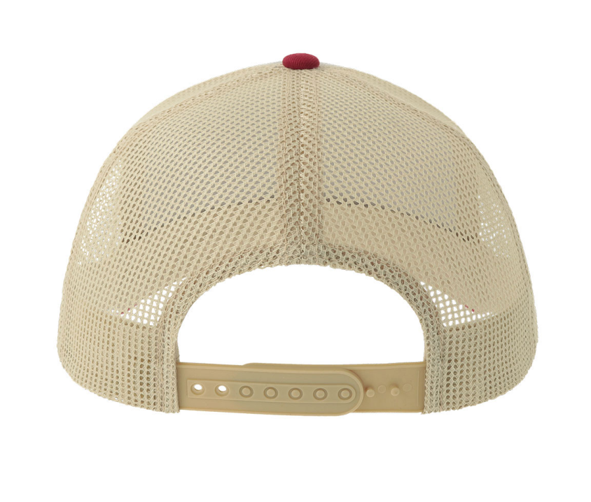 6 panneaux. Visière préformée. Fermeture par patte. Panneaux arrière et côtés en filet. Œillets surpiqués. Coutures décoratives sur la visière. Tour de tête : 58cm. Structure de la visière en plastique.