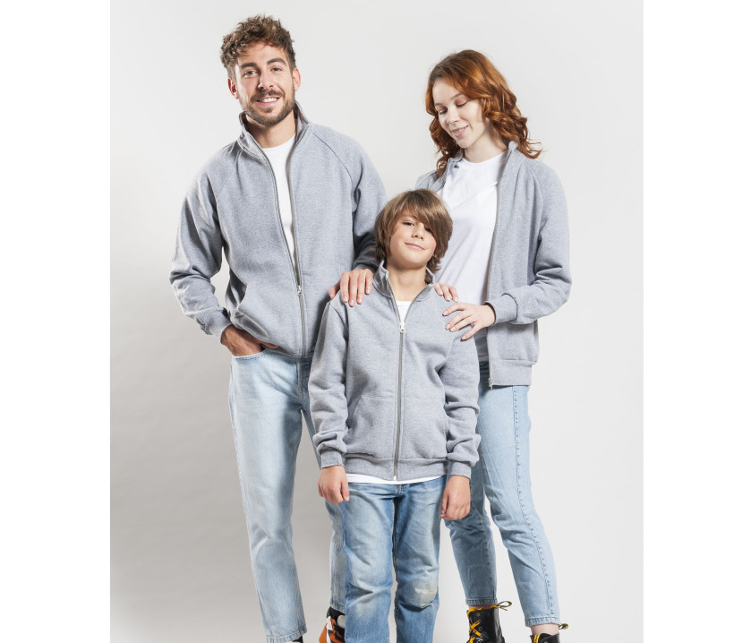 Poche kangourou. Taille et poignets en bord côte. Coupe tubulaire. Manches raglan. Bande de propreté ton sur ton.