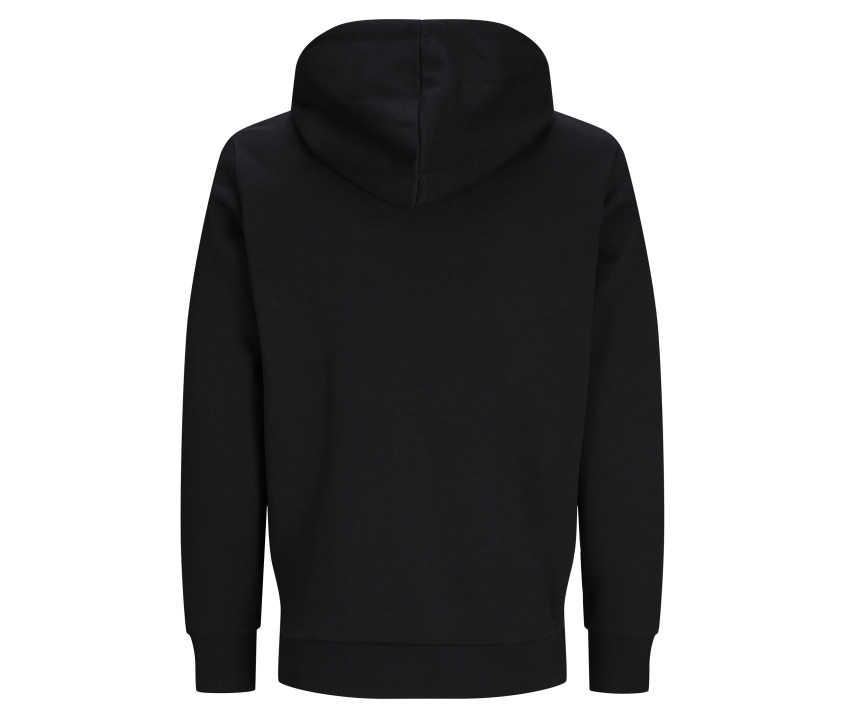 Fermeture zippée métallique. Capuche avec cordon de serrage aux embouts en métal. Poche kangourou.