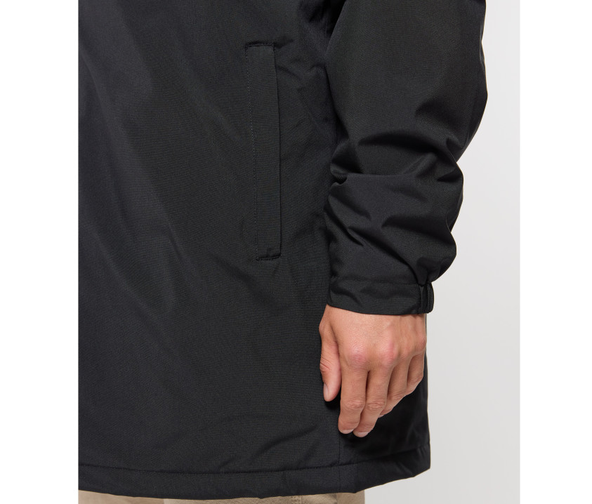 Parka longue unisexe. 2 poches latérales, 1 poche intérieure. Accès marquage : coeur et dos. Poignets élastiqués. Imperméabilité : 4000-5000mm. Ouatine et doublure 100% recyclées.