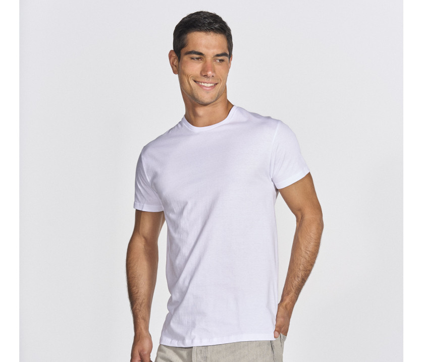 Coupe tubulaire. Renfort d'épaule à épaule. Doux et confortable à porter. Apprêt naturel pour une surface plus douce et lisse. Excellent résultat en sérigraphie et impression directe.