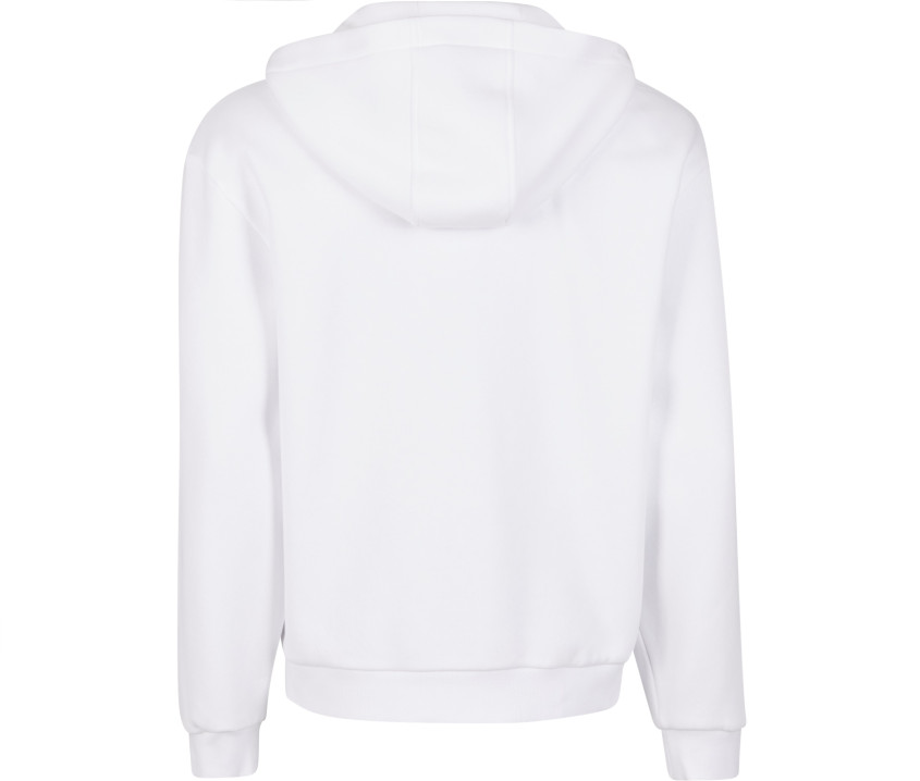 Coupe oversize. Épaules tombantes. Poche kangourou. Rib aux poignets et taille. Fermeture éclair en métal. Intérieur brossé.