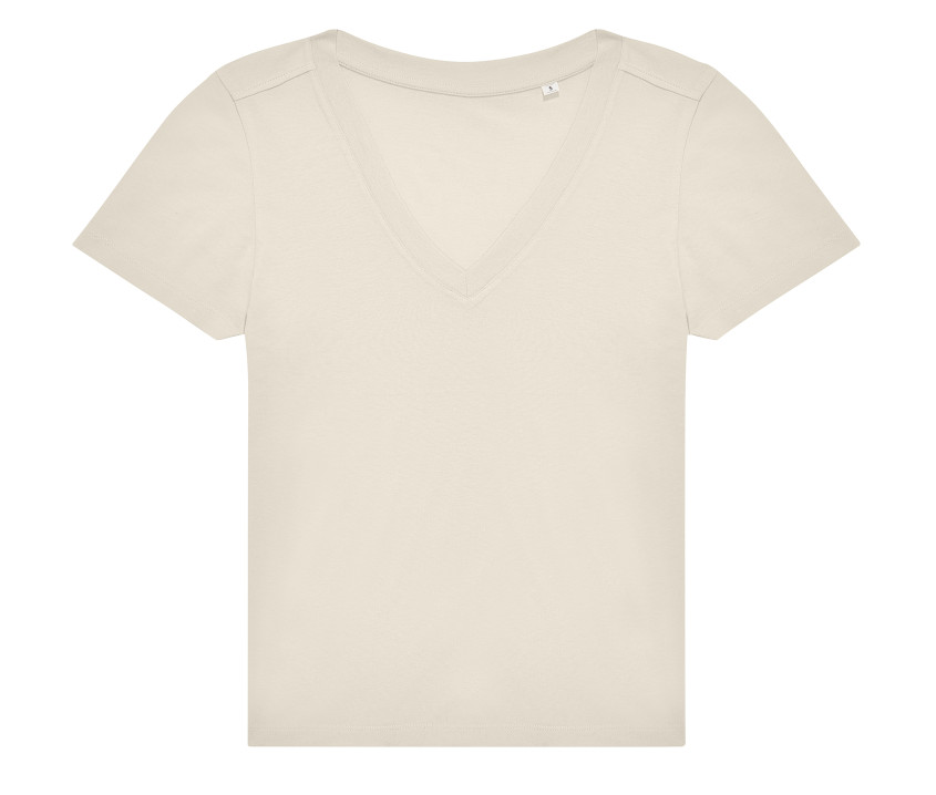 Coupe moderne. Coutures latérales. Col féminin en V. Bande de propreté au col. Matière résistante et douce.