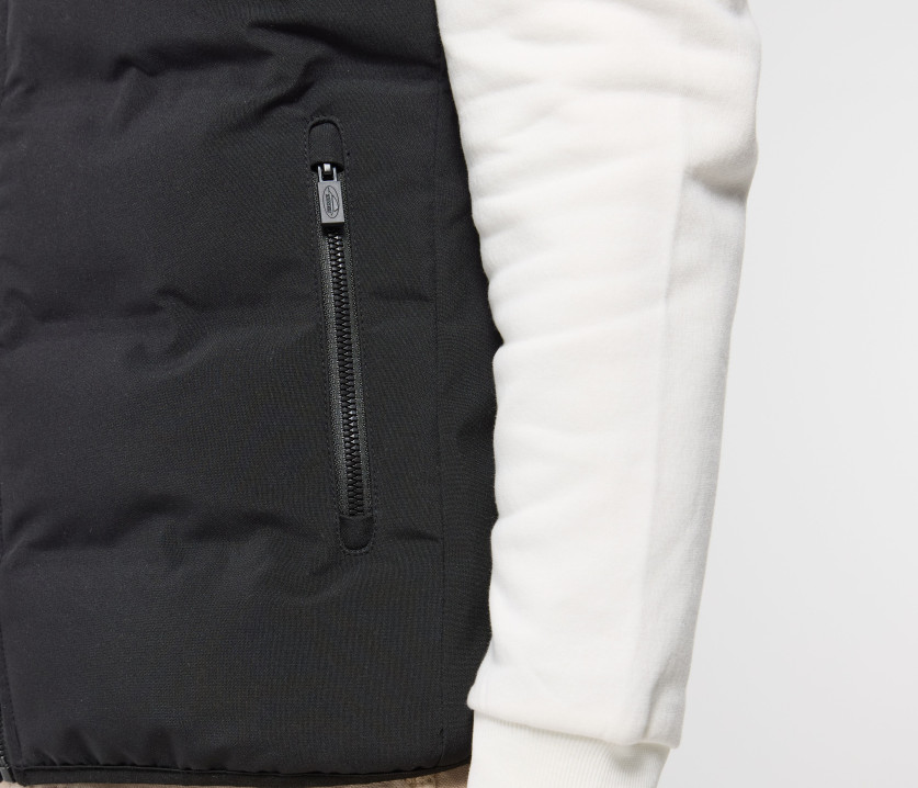 Ouatine en polyester 100 % recyclé. Bandes thermocollés. Accès marquage : coeur et dos. Protège cou. Biais élastiqués à la taille et aux emmanchures. Imperméabilité : 4000-5000mm.