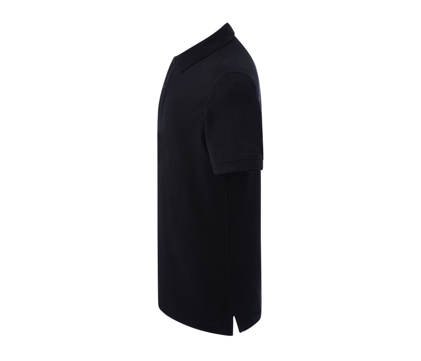 Maille piquée. Patte de boutonnage à deux boutons. Manches et col avec finition bords-côtes 1x1.
