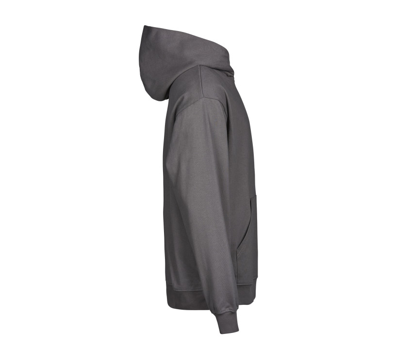 Coupe ample. Épaules tombantes. Rib avec élasthanne. Intérieur brossé. Demi-lune pour marquage personnalisé. Double teinture.