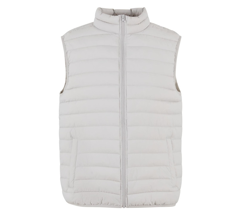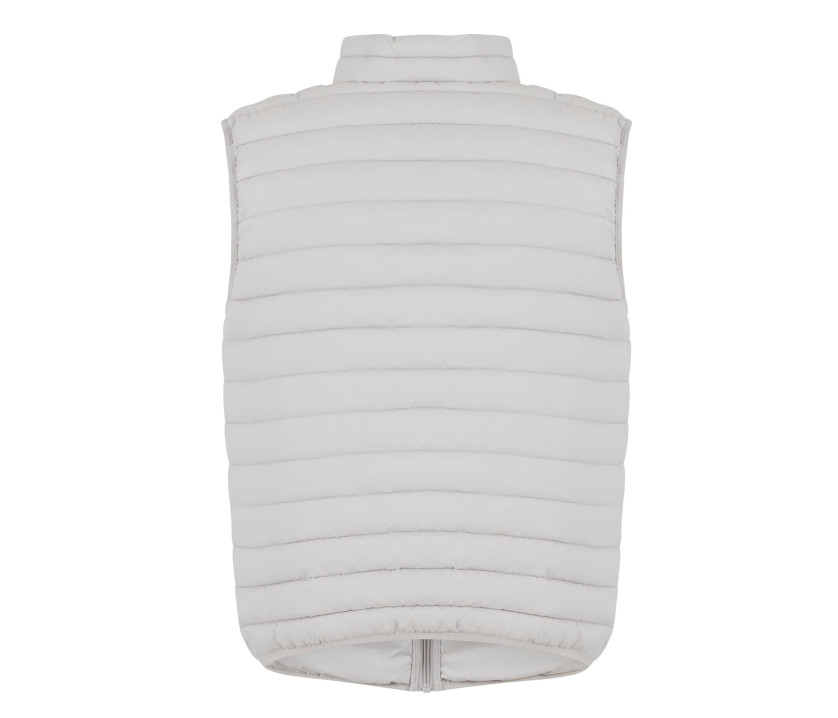 Emmanchures élastiquées. 2 poches latérales. Coupe droite. Col montant.