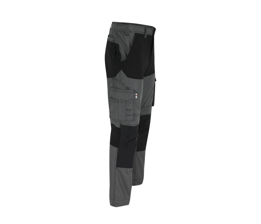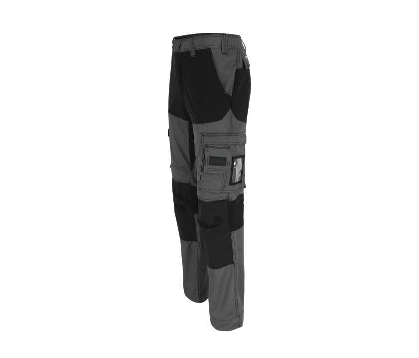 Pantalon multi-poches avec parties extensibles dans les 4 sens à l'entrejambe et aux genoux. 2 poches latérales. 1 poche téléphone. 2 poches sur les cuisses avec poches sur les jambes. 1 poche à mètre. 1 poche stylos. 2 poches arrière. Poches aux genoux en renfort Cordura®. 1 porte-badge. 1 boucle pour marteau. Ourlet à rallonge. Bouton recouvert.
