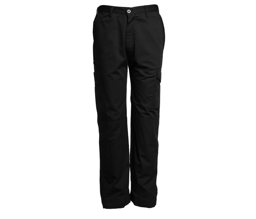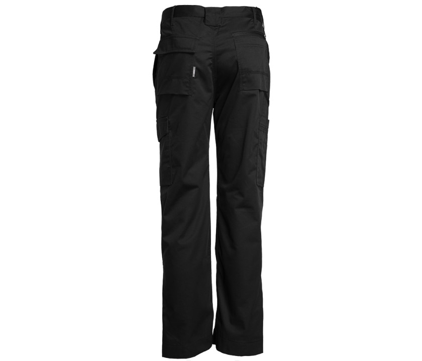 Pantalon de travail - 12 poches extérieures : 3 poches latérales (une avec zip), 6 poches côtés (2 Velcro®, 2 poches stylos, poche téléphone), 3 poches arrière (une avec rabat et une avec zip). Taille réglable par élastique. Fermeture Éclair® et bouton.