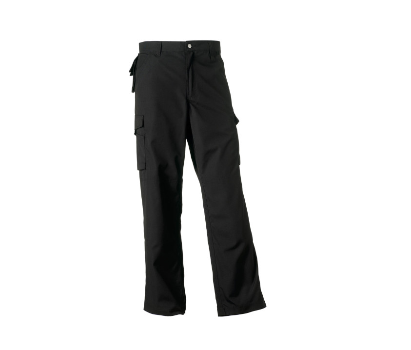 Lavable en machine à 60° et séchage au sèche-linge. Déperlant et coupe-vent. Enduction de protection anti-tâches avec DuPont™ Teflon®. Poches intérieures pour genouillères 21x15 cm maximum. Grandes poches plaquées de chaque côté avec plusieurs compartiments. Poche pour téléphone sous la ceinture. 2 poches à l’arrière : 1 ouverte et 1 avec rabat et Velcro®. Fond renforcé idéal pour le travail manuel.