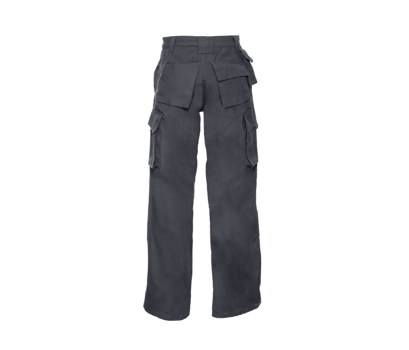 Lavable en machine à 60° et séchage au sèche-linge. Déperlant et coupe-vent. Enduction de protection anti-tâches avec DuPont™ Teflon®. Poches intérieures pour genouillères 21x15 cm maximum. Grandes poches plaquées de chaque côté avec plusieurs compartiments. Poche pour téléphone sous la ceinture. 2 poches à l’arrière : 1 ouverte et 1 avec rabat et Velcro®. Fond renforcé idéal pour le travail manuel.