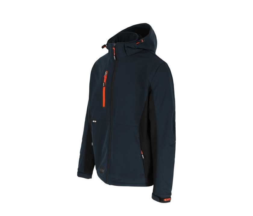 Veste Softshell respirante (3000 mvp), imperméable (5000 mm) et coupe-vent. Multi-poches. Capuche amovible. Poche poitrine. 2 poches latérales. Poignets ajustables. Taille ajustable par cordon élastiqué. Certifié EN ISO 13688:2013 et EN 14058:2017 13XX.