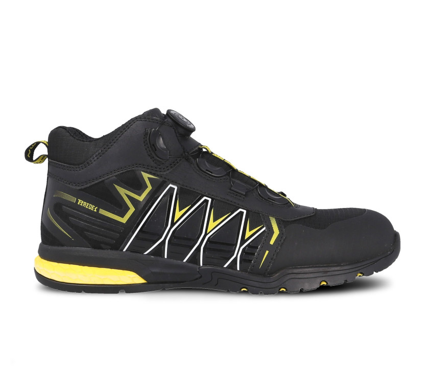 - Basket haute de sécurité avec embout COMPACT® non métallique, résistant aux impacts >200 joules. Approuvé spécification EN ISO 20345. Semelle en caoutchouc double densité EVA-nitrile "SRC", antidérapante, anti-perforation COMPACT® non métallique.