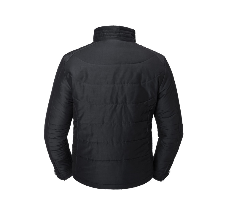 Coupe ajustée moderne. Tissu DWR haute performance traité avec Aquapel™ by Nanotex®. Rembourrage éco-responsable efficace de Dupont™ Sorona. Col montant avec 2 boutons-pression. Protège-menton. Rabat-tempête intérieur. Zips inversés sur le devant, la poche poitrine, les poches latérales et les manches. Poche intérieure zippée. Rabat de manche décoratif avec bouton-pression. Accès personnalisation.