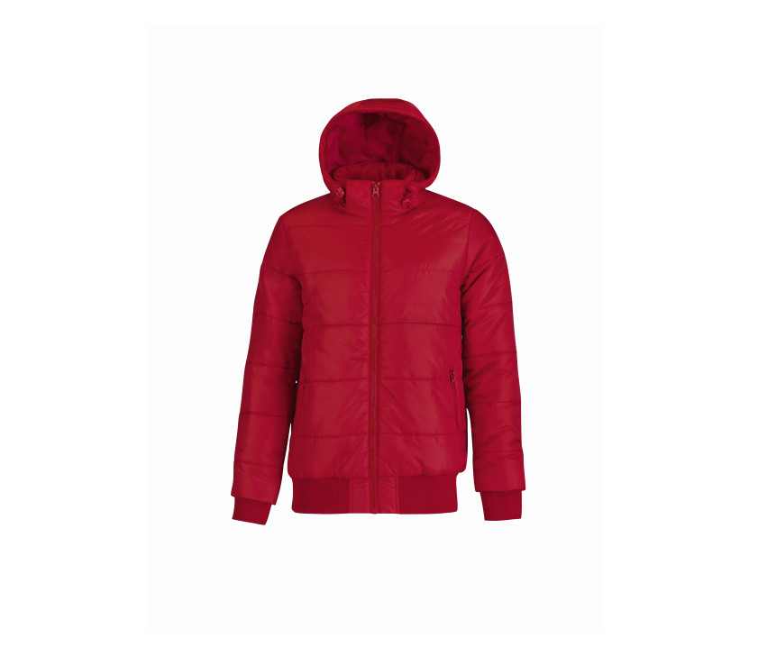 Coupe-vent déperlant et respirant. Col montant. Patte intérieure anti-intempéries. Bord côte aux manches. Accès marquage dos et cœur. 2 poches avant avec fermeture Éclair®. 1 poche portefeuille intérieure. Capuche rembourrée, détachable et ajustable.