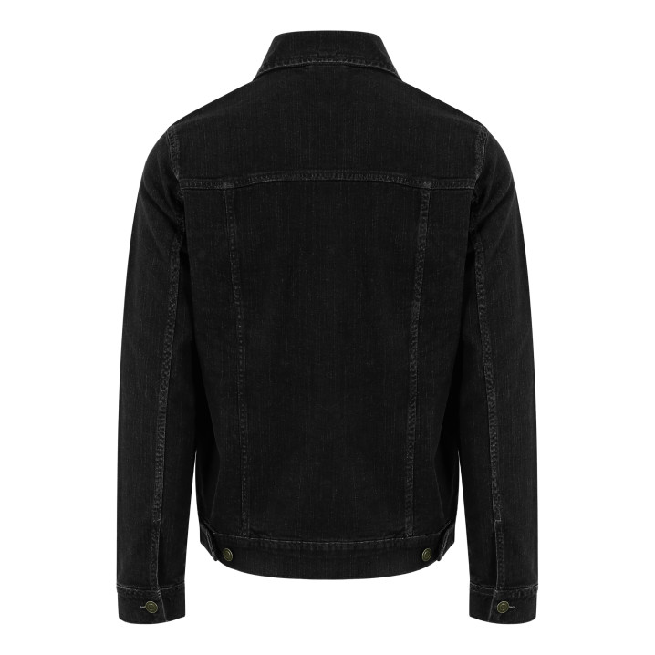 Coupe moderne. Jean stretch. 4 poches. Coutures contrastées. Fermeture par boutons. Bouton de décoration aux poignets. Bride de suspension à l'intérieur du col.