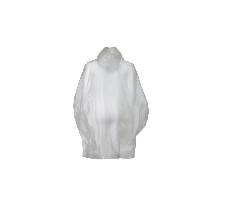 Cape de pluie en PVC. Imperméable et coupe-vent. Fermeture col par 2 boutons pression. Capuche avec cordon. Peut s’étendre à plat pour faire une bâche ou une protection sur le sol. Vendu avec une pochette avec poignée. 2 boutons pression de chaque côté.