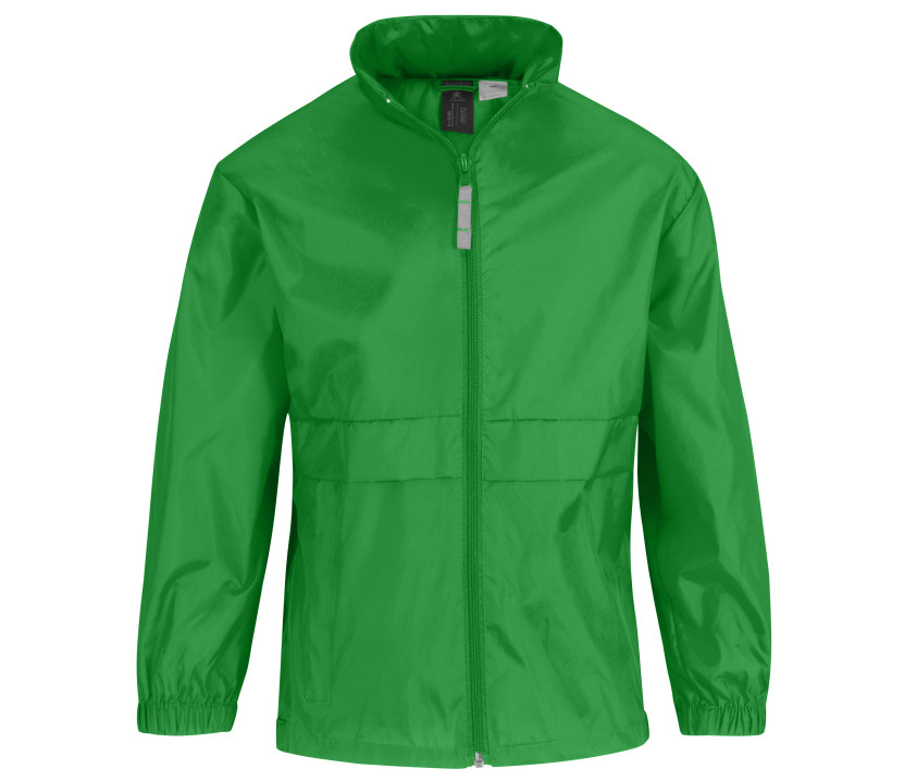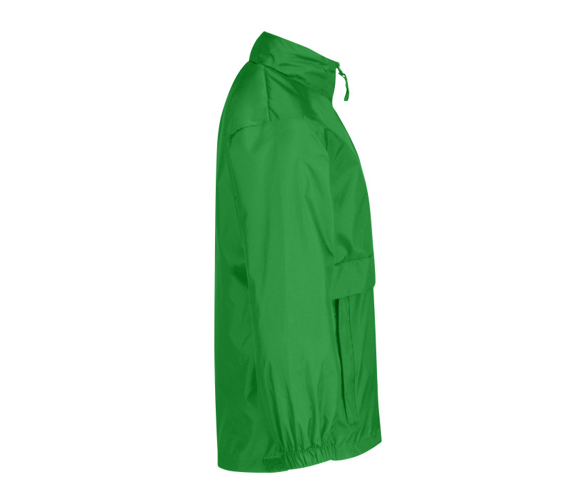 Fermeture zippée. Capuche dans le col. Veste imperméable et coupe-vent, repliable dans une poche centrale.