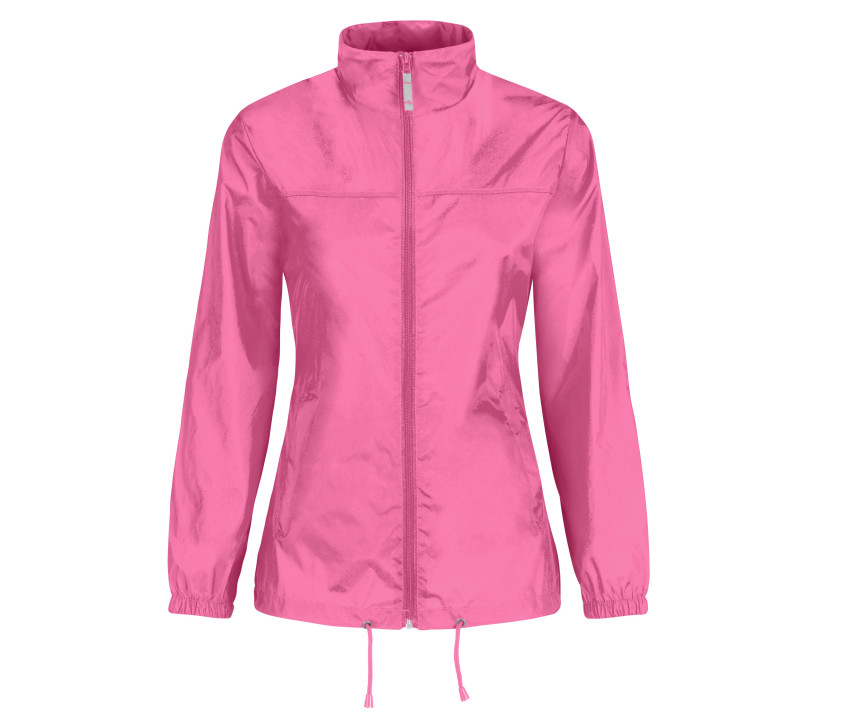 Imperméable et coupe-vent. Ouverture totale par fermeture Éclair® avec curseur de couleur contrastée. 2 poches avant. Capuche dissimulée dans le col. Veste pliable (système K-Way®) dans une poche avec double fermeture à glissière. Coupe féminine.
