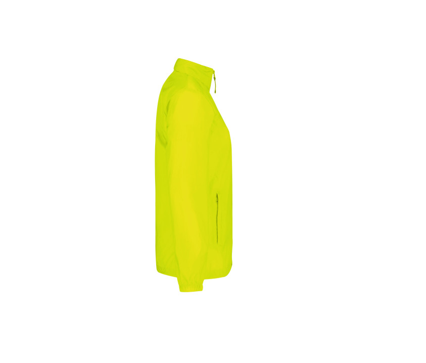 Imperméable et coupe-vent. Ouverture totale par fermeture Éclair® avec curseur de couleur contrastée. 2 poches avant. Capuche dissimulée dans le col. Veste pliable (système K-Way®) dans une poche avec double fermeture à glissière. Coupe féminine.