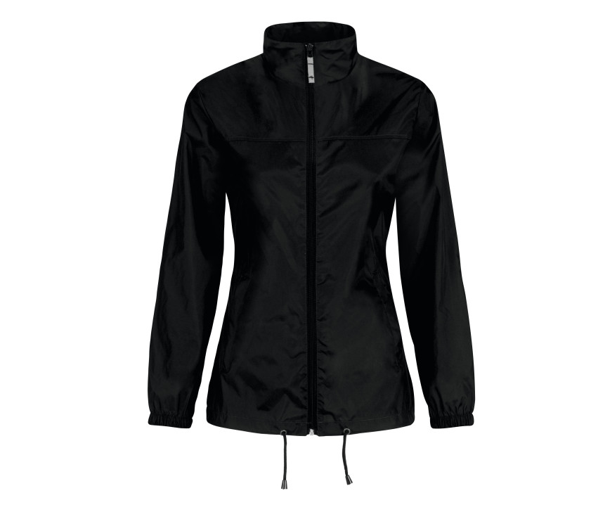 Imperméable et coupe-vent. Ouverture totale par fermeture Éclair® avec curseur de couleur contrastée. 2 poches avant. Capuche dissimulée dans le col. Veste pliable (système K-Way®) dans une poche avec double fermeture à glissière. Coupe féminine.