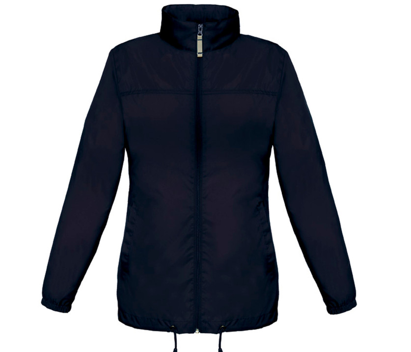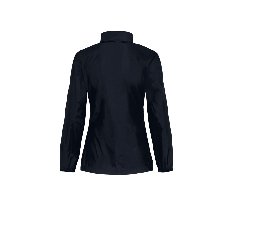 Imperméable et coupe-vent. Ouverture totale par fermeture Éclair® avec curseur de couleur contrastée. 2 poches avant. Capuche dissimulée dans le col. Veste pliable (système K-Way®) dans une poche avec double fermeture à glissière. Coupe féminine.