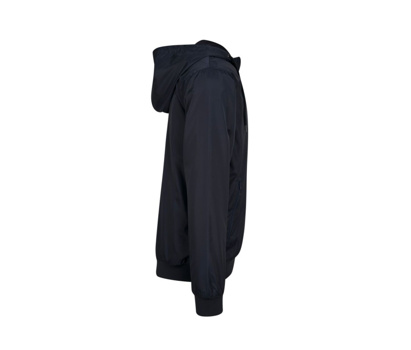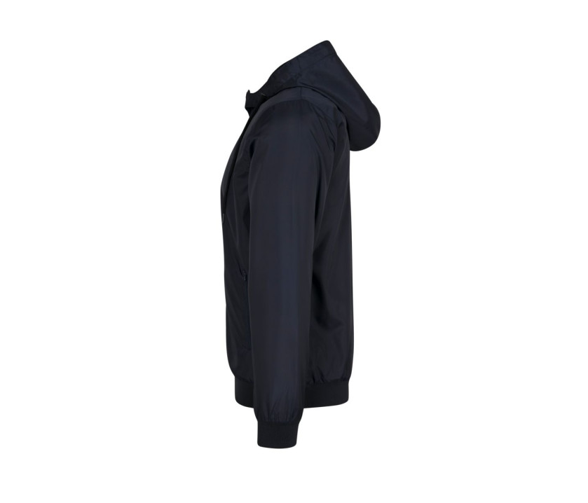 Veste grand zip. Capuche avec cordons contrastés. Coupe-vent, respirante et imperméable. Doulure filet. Fermeture zippée contrastée. Poches latérales avec zip contrasté. Sans étiquette de marque, puce de taille uniquement. Bord côte aux manches et à la taille. Pas de marquage possible.