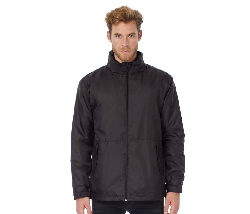 2 poches avec fermeture Éclair® et rabat. 1 poche portefeuille intérieure avec fermeture Velcro®. Zip central SBS. Poignets ajustables. Coupe-vent imperméable et respirant. Capuche ergonomique ajustable intégrée dans le col, avec cordon élastique et deux stoppers faciles à ajuster. Accès marquage en bas du dos.