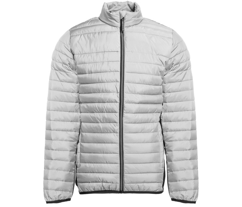 Doudoune légère moderne bi-matière, coupe ajustée. 2 poches latérales zippées. 2 poches intérieures. Protège menton. Zips contrastés. Dimension zone de marquage avant 9cm et 12cm à l’arrière.
