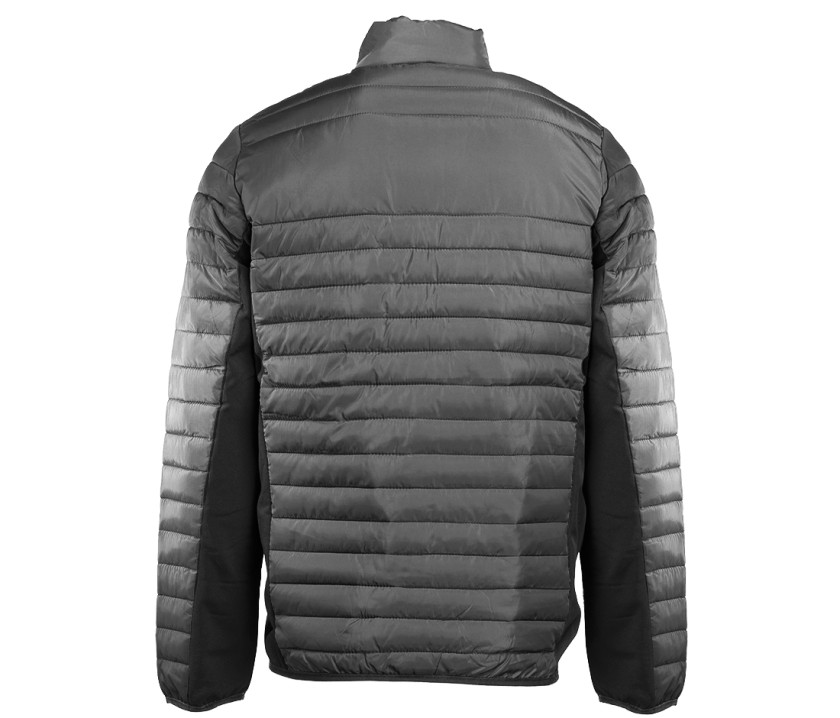 Doudoune légère moderne bi-matière, coupe ajustée. 2 poches latérales zippées. 2 poches intérieures. Protège menton. Zips contrastés. Dimension zone de marquage avant 9cm et 12cm à l’arrière.