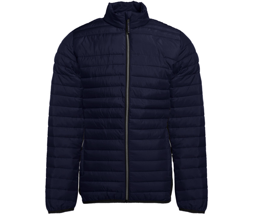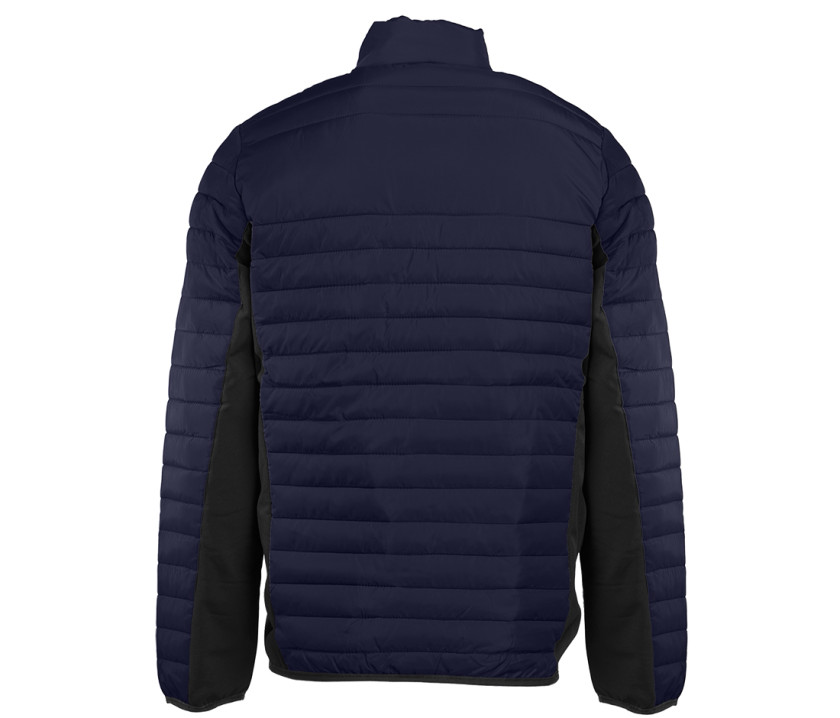 Doudoune légère moderne bi-matière, coupe ajustée. 2 poches latérales zippées. 2 poches intérieures. Protège menton. Zips contrastés. Dimension zone de marquage avant 9cm et 12cm à l’arrière.