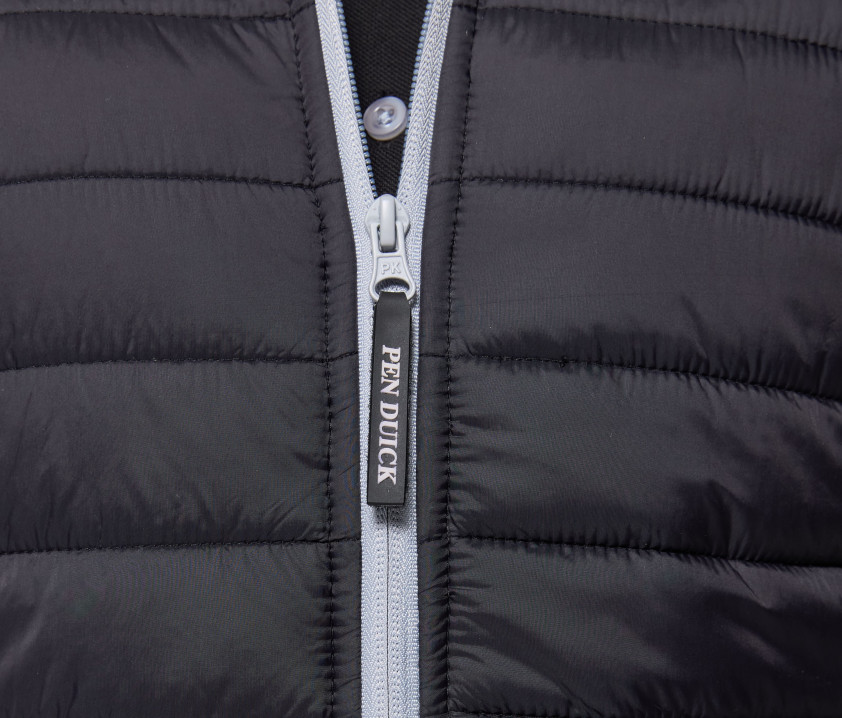 Doudoune avec capuche. Coupe-vent et déperlant. 2 poches latérales avec languette. Grande poche intérieure zippée. Poche intérieure Velcro®. Poignets et ourlet élastiqués. Hauteur entre les coutures : 4cm.