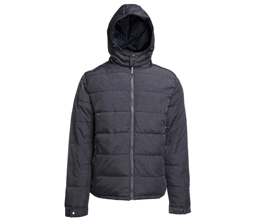 Doudoune homme matelassée avec capuche amovible. 2 poches zippées sur les côtés. 1 poche intérieure zippée. 1 poche intérieure Velcro®. Tricots aux poignets. Accès marquage au dos.