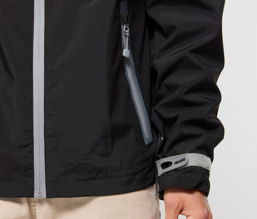 - Tissu contrecollé avec membrane respirante 3000 g/m² par 24 heures et imperméable à 8000mm. Coutures thermo-soudées. Possibilité de 3 en 1 avec le bodywarmer Réf. PK310.