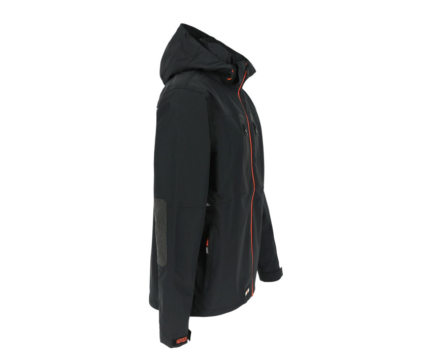 - Veste technique imperméable, coupe-vent et respirant. Coutures recouvertes. Capuche ajustable et rangeable.