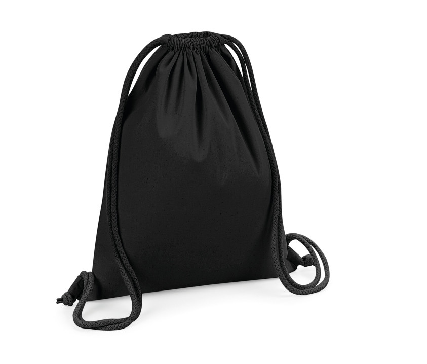 Coton organique certifié par Control Union. Coton premium pour une plus longue durabilité. Fermeture par cordelette. Surface d'impression : 30x32cm.