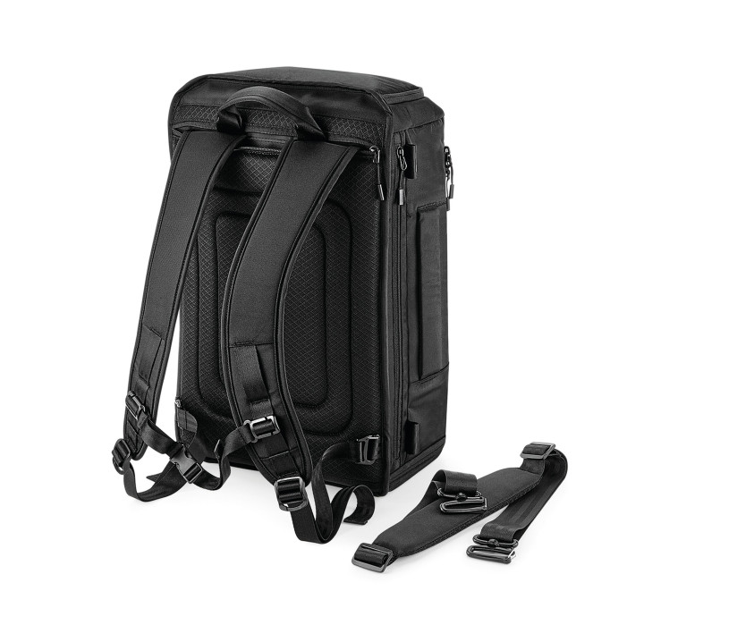 Étiquette détachable TearAway, facile à ré-étiqueter. Tissu résistant à l'abrasion et à l'eau. Design minimaliste. Compatible avec les ordinateurs portables jusqu’à 15.6". Compartiment rembourré sécurisé pour ordinateur portable avec accès extérieur. Compartiment principal spacieux. Poche latérale zippée pour bouteille d'eau/parapluie. Doublure 100% Polyester HD. Système innovant de bretelles permettant de transformer le sac à dos en sac à bandoulière. Elastique porte-bouteille à l'intérieur. Dos matelassé en maille filet respirante. Surface d'impression 20x20cm.
