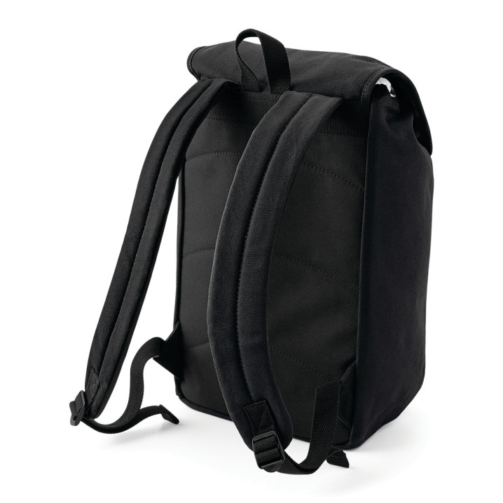 Étiquette détachable. Convient aux ordinateurs portables jusqu’à 14". Compartiment pour ordinateurs portables matelassé. Fermeture par corde. Fermetures aimantées derrière lanières décoratives. Bretelles matelassées ajustables. Poignée de transport. Détails en PU et métal. Dos et base rembourés. Surfaces d'impression rabat 18x14cm, devant 23x16cm.