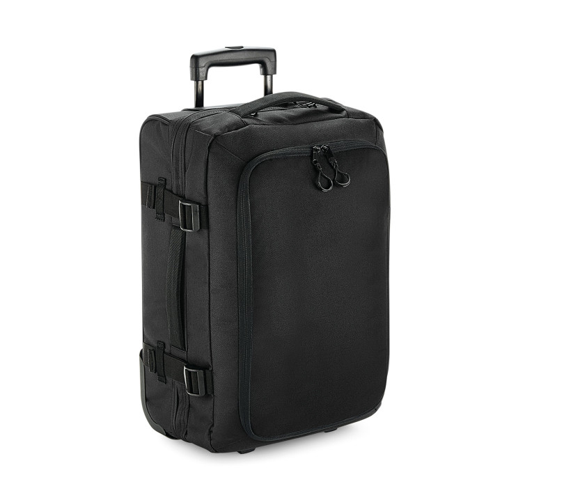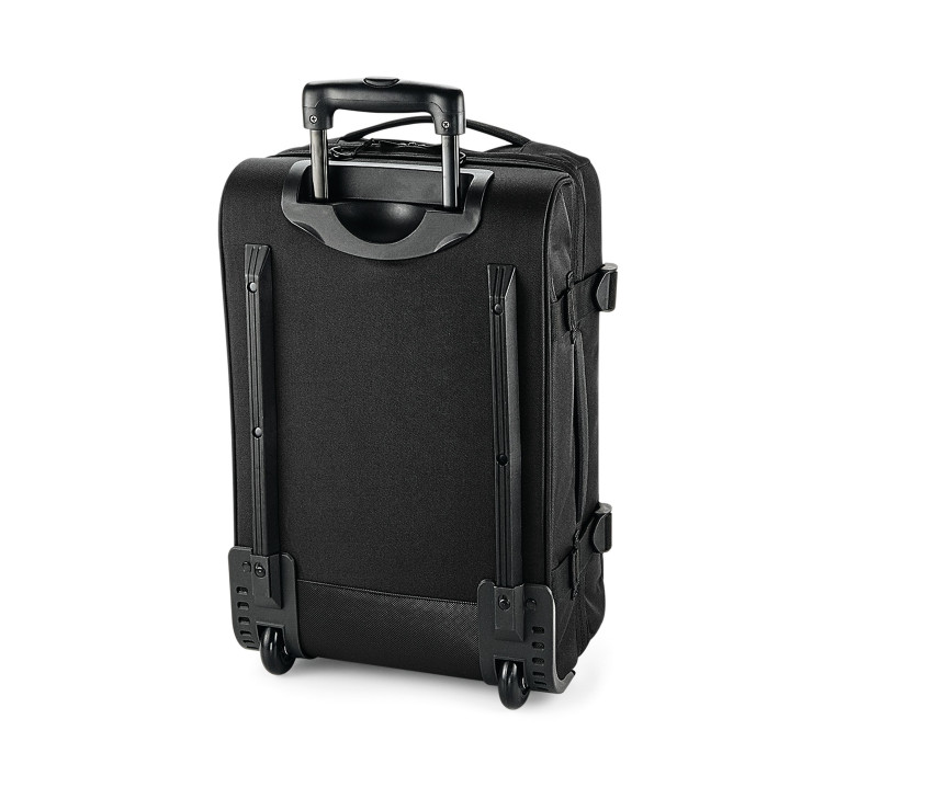 Étiquette détachable. Compartiment double. Fermeture principale zippée avec la possibilité d'utiliser un cadenas (non fourni). Grande poche avant zippée. Intérieur de la poche séparé par une parois en filet. Poche intérieure zippée. Sangles de compression. Poignées latérale et du dessus matelassées. Poignée rétractable. Dimensions idéales pour bagage cabine. Roulettes intégrées haute résistance. Peut être associée au BG485. Poche matelassé pour ordinateur portable jusqu'à 15,6". Surface d'impression 20x36cm.