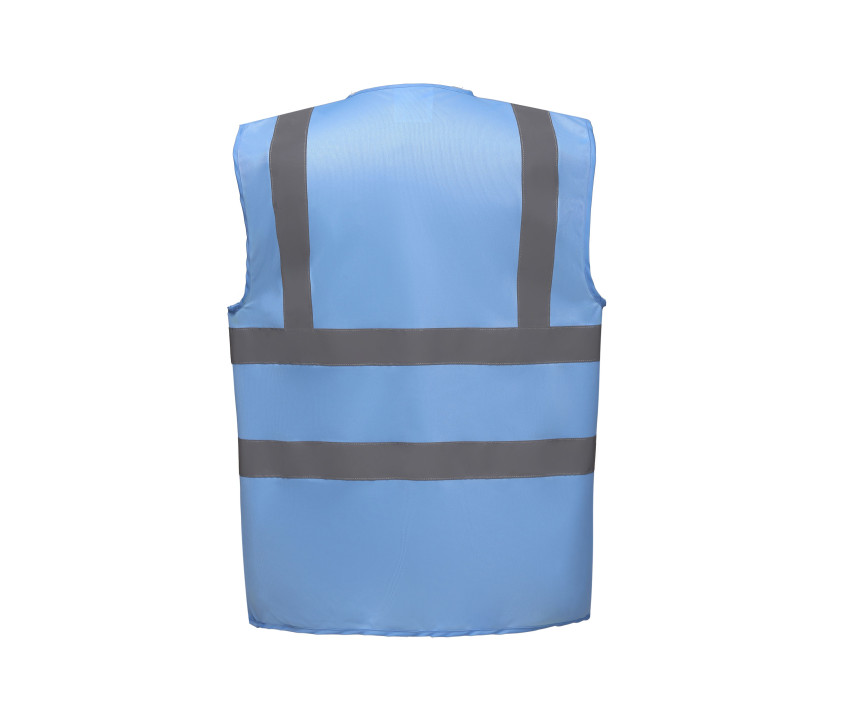 2 bandes verticales et 2 bandes horizontales réfléchissantes cousues de 5cm. Coloris Hi-Vis Yellow, Hi-Vis Orange & Orange/Hi-vis yellow conforment à la spécification EN ISO20471:2013 Class 2. Coloris Black/Hi-vis Yellow, Lime/Yellow, Navy/Hi-vis Yellow, Purple/Hi-vis Yellow, Paramedic Green/Hi-vis Yellow, Red/Hi-vis Yellow, Raspberry/Hi-vis Yellow, Royal/Hi-vis Yellow conforment à la spécification EN ISO20471:2013 Class 1.