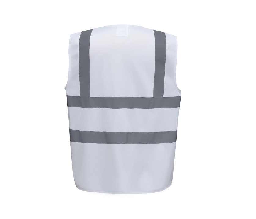 2 bandes verticales et 2 bandes horizontales réfléchissantes cousues de 5cm. Coloris Hi-Vis Yellow, Hi-Vis Orange & Orange/Hi-vis yellow conforment à la spécification EN ISO20471:2013 Class 2. Coloris Black/Hi-vis Yellow, Lime/Yellow, Navy/Hi-vis Yellow, Purple/Hi-vis Yellow, Paramedic Green/Hi-vis Yellow, Red/Hi-vis Yellow, Raspberry/Hi-vis Yellow, Royal/Hi-vis Yellow conforment à la spécification EN ISO20471:2013 Class 1.