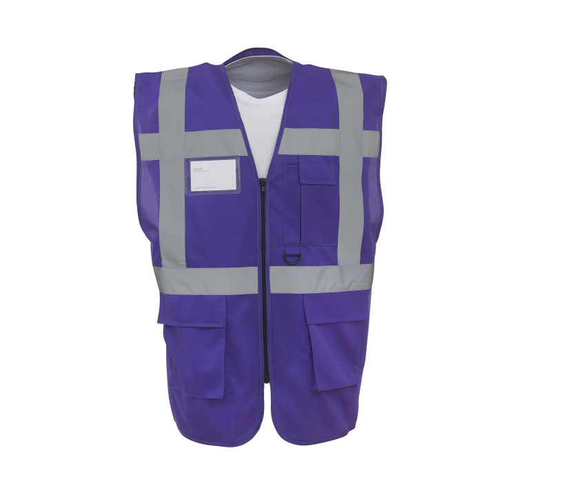 Gilet multi-fonction haute sécurité - 2 bandes verticales et 2 bandes horizontales réfléchissantes cousues de 5cm. Fermeture zippée. Emplacement pour identification sur poitrine côté coeur. Coloris Hi-vis Yellow, Hi-vis Orange, Hi-vis Orange/Hi-vis Yellow conformes à la spécification EN ISO20471:2013 Class 2. Coloris Paramedic Green/Hi-vis Yellow, Red/Hi-vis Yellow, Hi-vis Yellow/Royal Blue, Hi-vis Yellow/Black, Hi-vis Orange/Royal blue, Hi-vis Orange/Black, Hi-vis Yellow/Navy, Hi-vis Orange/Navy, Hi-vis Yellow/Grey, Hi-vis Orange/Grey, Hi-vis Yellow/Purple conformes à la spécification EN ISO20471:2013 Class 1. Les coloris Paramedic Green, Black, Pink, Red, Royal, Sapphire, Sky, White, Purple ne sont pas conformes à la spécification EN ISO20471:2013.