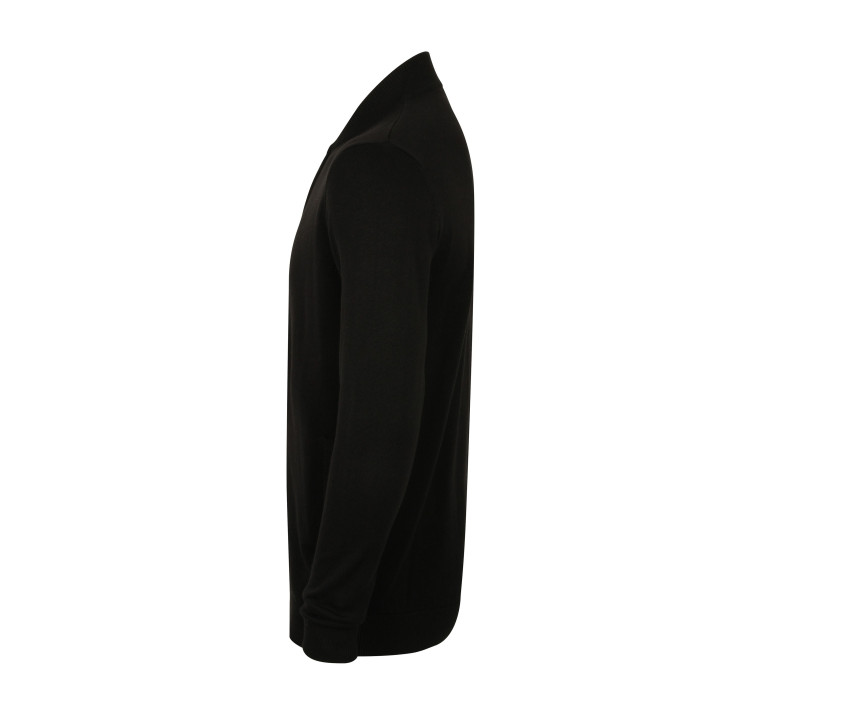 Gilet grand zip. Zip en métal. Jauge 12. Ourlet, col et poignets en bords côte. Poches passepoilées.