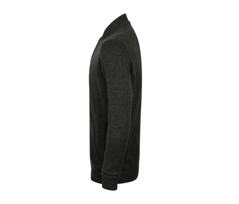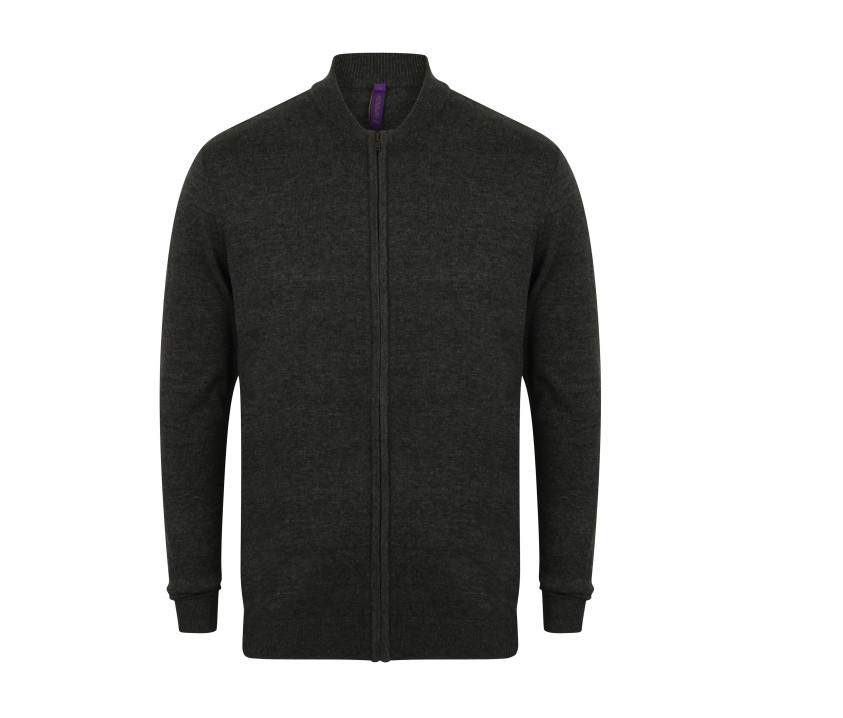 Gilet grand zip. Zip en métal. Jauge 12. Ourlet, col et poignets en bords côte. Poches passepoilées.
