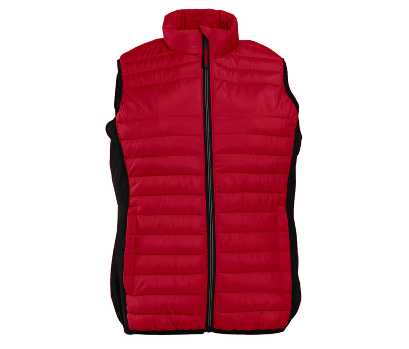 Bodywarmer bi-matière femme - Bodywarmer léger moderne bi-matière. 2 poches latérales zippées. Zips contrastés.