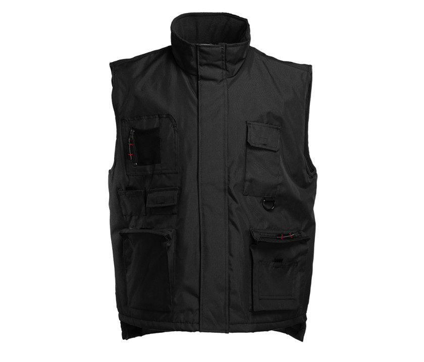 - Bodywarmer coupe-vent multi-poches avec enduction imperméable. 10 poches extérieures. Dos plus long et Velcro® pour ajustement de la taille.
