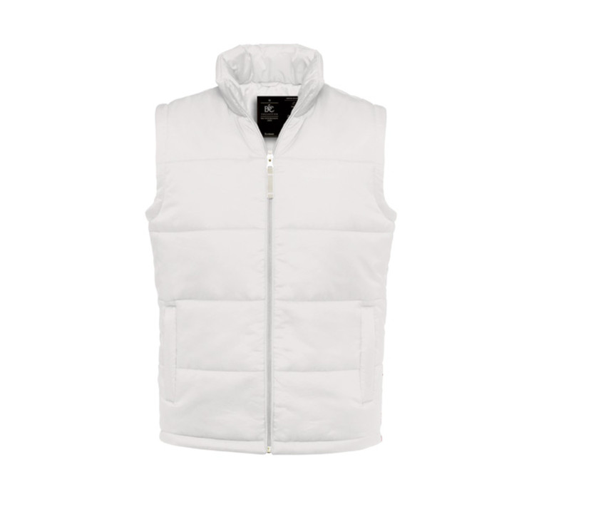 Bodywarmer matelassé. Imperméable et coupe-vent. 2 poches extérieures zippées. 1 poche intérieure côté gauche. Sans capuche. Accès pour personnalisation par zip dans le dos.