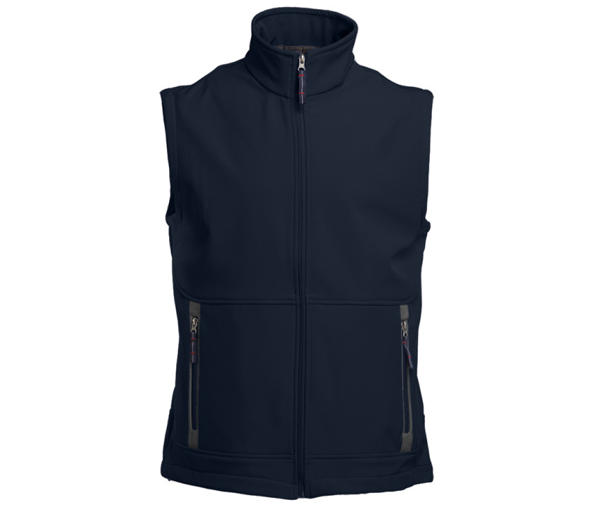 Gilet Softshell ultra léger. Tissu contrecollé 3 couches avec membrane respirante (800g) et imperméable (3000-5000mm). 2 poches zippées. Élastique bas avec stoppers. Intérieur en micropolaire.
