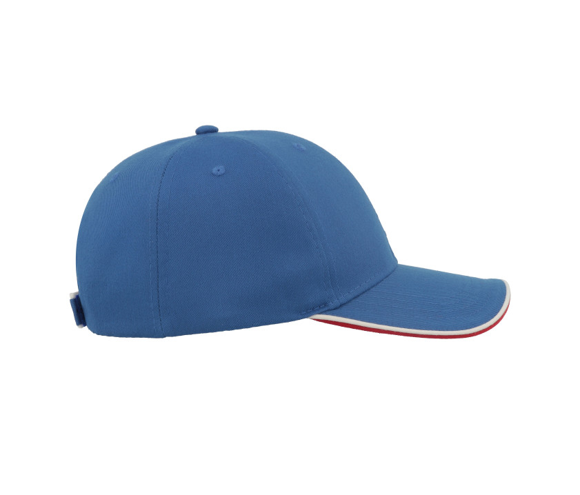6 panneaux. Fermeture par Velcro®. Passepoil sur la visière et sur la patte de réglage. Visière contrastée et préformée. Œillets surpiqués. 4 coutures sur la visière. Tour de tête : 58cm. Structure de la visière en plastique.