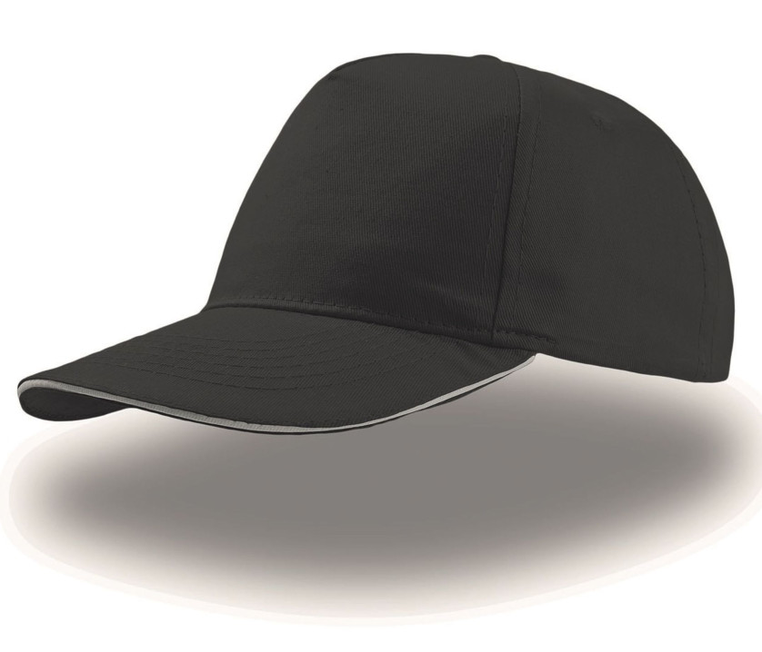 5 panneaux. Fermeture par Velcro®. Bandeau en polyester. Liseré sandwich sur visière. Œillets surpiqués. Panneau avant renforcé. Visière préformée. 6 coutures sur la visière. Tour de tête : 58cm. Structure de la visière en plastique.